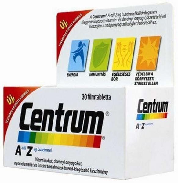 Vitaminokat, ásványi anyagokat, nyomelemeket és luteint tartalmazó étrend-kiegészítő felnőtteknek. Mindennapi aktivitásunk megőrzéséhez a testnek és a léleknek támogatásra van szüksége. A Centrum® A-tól Z-ig® különleges összetételének köszönhetően megadja ezt a támogatást, így segít, hogy egészséges és boldog életet élhessünk. Mindehhez azonban nélkülözhe
