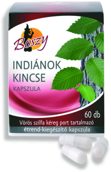 A Boszy Indiánok Kincse kapszula vörös szilfakéreg kivonatot tartalmaz, mely kiválóan segíti az emésztést, hozzájárulhat a gyomor és bélrendszeri gyulladások gyorsabb gyógyulásához. Gyógyászati felhasználását a telepesek az indiánoktól vették át. Az emésztést elősegíti. Hatóanyagai a koleszterin felszívódását gátolják. Enzimtartalma lebontó hatású. Humán k