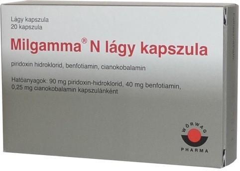 Milgamma N lágy kapszula benfotiamin, piridoxin-hidroklorid, cianokobalamin A Milgamma N kapszula neuropátiák kezelésére alkalmazott, B-vitaminokat (B1-vitamin-származék, B6-és B12-vitamin) tartalmazó készítmény. A Milgamma N kapszula az alábbiak kezelésére szolgál: - különböző eredetű idegbántalmak kezelésére - gyulladásos eredetű és fájdalmas idegbántalmak, pl. cukor