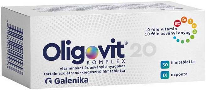 Az Oligovit® filmtabletta 10 vitamin és a legfontosabb 10 ásványi anyag kombinációját tartalmazza. Oligovit 20 Komplex vitamin és ásványi anyag filmtabletta (30db) Az Oligovit® filmtabletta 10 vitamin és a legfontosabb 10 ásványi anyag kombinációját tartalmazza. Hatóanyag-táblázat Hatóanyagok 1 filmtablettában % NRV* A-vitamin400 g50D-vitamin6 g120E-vitamin15 mg125B1-vitamin2