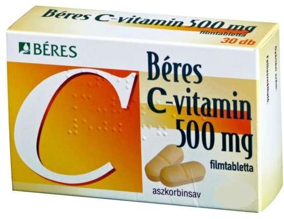 Miért ajánljuk ezt a készítményt? A készítmény szedése biztosítja az egészség megőrzéséhez nélkülözhetetlen C-vitamin megfelelő mennyiségű bevitelét. Mikor ajánlott a készítmény szedése? C-vitamin-hián y (skorbut, Möller-Barlow-betegség) kezeléséreA Béres C-vitamin 500 mg filmtabletta hatóanyaga az aszkorbinsav (C-vitamin), mely egy vízben oldódó, antioxidáns