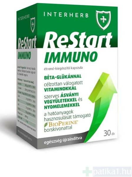 Az Interherb Restart Immuno kapszula az immunrendszer megfelelő működésére kifejlesztett készítményünket az ellenálló képesség támogatására, a legyengült, lábadozó szervezet erősítésére ajánljuk. Béta-glük ánnal , célzottan válogatott vitaminokkal, szerves ásványi vegyületekkel és nyomelemekkel , valamint a hatóanyagok hasznosulását támogató BIOPERINE borskivo