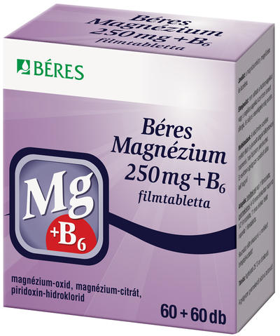 Gyártó: BÉRES Modell: Magnézium 250mg+B6 tabletta 120db Leírás: Béres Magnézium+B6 filmtabletta A Béres Magnézium+ B6 kiválóan felszívódó magnézium kombinációt tartalmaz. Összetételének köszönhetően elegendő napi 1 tabletta a magnéziumhiány megelőzésére és kezelésére. A magnézium hiány oka lehet:fokozott fizikai igénybevétel, terhesség és szoptatás idején n