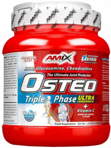 Az Amix Osteo TriplePhase egy koncentrált ízületi táplálék-kiegészítő nagy dózisú MSM-mel, glükózaminnal és kondroitinnal, C-vitaminnal dúsítva. Elősegíti a kollagéntermelést és az erek, a csontok, a porcok, az íny, a bőr és a fogak megfelelő működését. Magas C-vitamin tartalmának köszönhetően a TriplePhase segít csökkenteni a fáradtságot és segít fenntartani