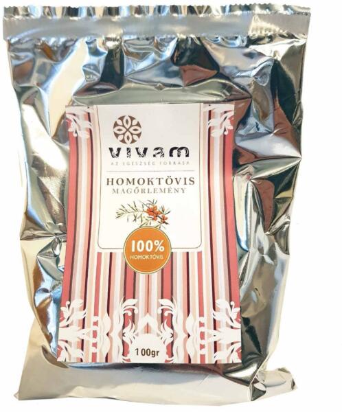 A Vivam Homoktövis magőrlemény magas A- és E-vitamin tartalma miatt kiváló immunerősítő, bőrregeneráló hatású. Rosttartalma segíti a belek tisztulását. A homoktövisbogyók szárított magjának rostos őrleménye. A homoktövis mag fitokemikáliákat, bioflavonoidokat, polifenolokat, valamint, speciális ballasztanyagokat és rostokat tartalmaz. Adagolása : Ajánlott napi 1-2 te