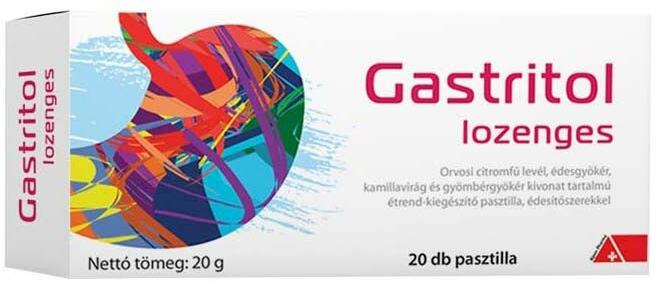 A Gastritol pasztilla orvosi citromfű levél, édesgyökér, kamillavirág és gyömbérgyökér kivonat tartalmú étrend-kiegészítő, mely felnőttek számára ajánlott. Jellemzők Vegán, laktózmentes, GMO mentes. Magas tisztaságú gyógynövény kivonatokat tartalmaz. A citromfű és gyömbérgyökér hozzájárul az emésztőrendszer normál működéséhez. A kamillavirág segít csök