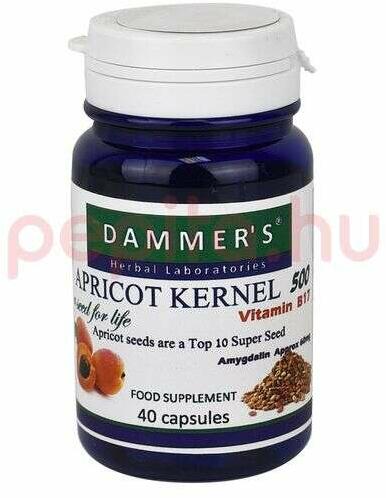 Termék leírása: DAMMERS APRICOT KERNEL SÁRGABARACKMAG KAPSZULA 40DBTermék összetétele:zselatin kapszula , sárgabarackmag kivonatA sárgabaracjmagban található amigdalin , amit B-17 vitaminnak is szoktak nevezni. A B17-vitamin molekulában két rész cukor, egy rész benzaldehid és egy rész cián van, melyek szorosan összekapcsolódnak. A cián erősen mérgező, azonban ebben a termé