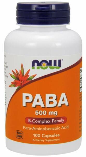 A PABA 500 mg para-amino-benzoesavat tartalmazó kapszula, amely számos élelmiszer természetes része. Az emberi test folsav, tehát B9-vitamin előállítására használja.