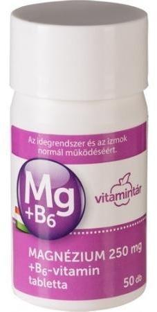 Termékleírás Termék információk A magnézium és a B6-vitamin hozzájárul az idegrendszer normál működéséhez. A magnézium hozzájárul az izmok normál működéséhez. Hazai feldolgozású termék. A hatóanyagok eltérő eredetűek. Előírt terméknév Magnézium 250 mg filmtabletta, magnéziumot és B6-vitamint tartalmazó étrend-kiegészítő készítmény. Egyéb információk