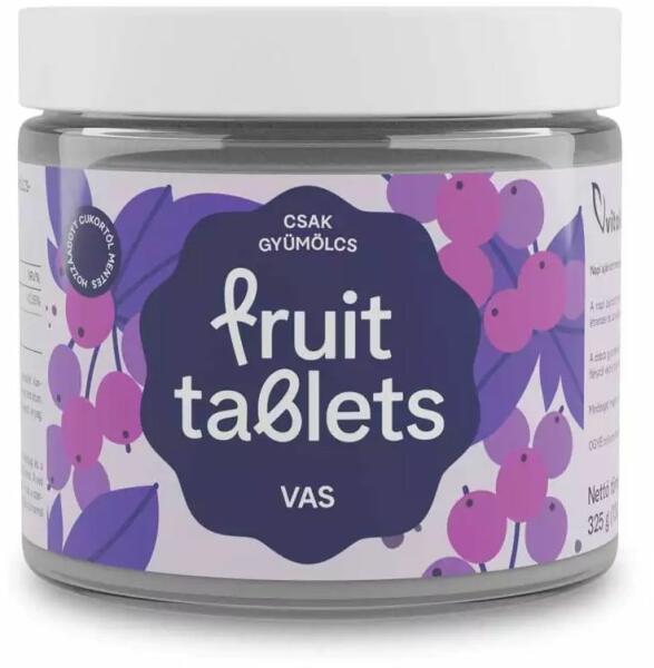 A Vitaking Fruit Tablets Vas természetes gyümölcsökből (alma, feketeribizli) készült, tartósítószer és hozzáadott cukor nélkül. Fruit Tablets termékcsaládunk végre véget vet a gumicukrok és a kétes eredetű zselatin termékek korának. Innovatív megoldásunkkal az étrend-kiegészítők fogyasztása végre finom és egyben egészséges élvezetté válik. Gyümölcskoncentrát