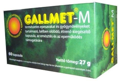 Gallmet-M kapszula Gallmet-M, természetes epesavakat, és gyógynövényeket tartalmazó, bélben oldódó étrend-kiegészítő kapszula, az emésztés és az epeműködés támogatására. Összetevők: - szárított marhaepe - tömegnövelő: mikrokristályos cellulóz - kapszula héj: hidroxi-propil-metil-cellulóz - szárított gyógynövények - mentalevél - pemetefű - fehérmályva gyök