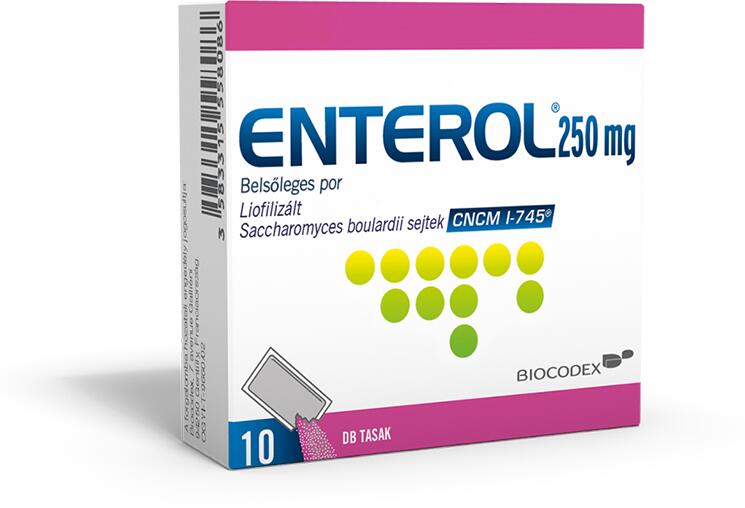 Budapesten és Pest megyében gyors házhozszállítással!Felnőttek és gyermekek heveny hasmenésének kiegészítő kezelése. Kiegészítő kezelésként a bélflóra egyensúlyának helyreállítására antibiotikum kezelés mellett. 5 1. A GYÓGYSZER MEGNEVEZÉSE Enterol 250 mg belsőleges por 2. MINŐSÉGI ÉS MENNYISÉGI ÖSSZETÉTEL 250 mg liofilizált Saccharomyces boulardii CNCM I-745