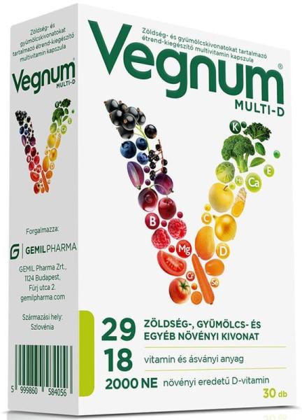 TERMÉKISMERTETŐ Vegnum Multi-D kapszula 30x A világ megváltozott körülöttünk. Stressz, szennyezett levegő, adalékanyagok, az élelmiszerek csökkenő vitamin és ásványi anyag tartalma, UV-sugárzás. Természetes védekezőrendszerünket több és erősebb támadás éri, mint valaha. Az új Vegnum Multi-D kapszula a modern kor újragondolt immuntámogatója, amely 3-as támogatást n