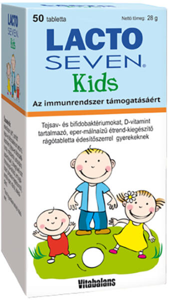 Jellemzők A tejsavbaktériumok megtalálhatók minden normál emberi bélflórában. A Lacto Seven Kids 7 különböző emberi tejsavbaktérium törzset (Lactobacillus és Bifidobaktériumok) és D-vitamint tartalmaz. A bélflóra kialakulása már csecsemőkorban a születéskor elkezdődik és egészen a gyermek 2-3 éves koráig tart. A tejsavbaktériumok fontos szerepet játszanak a bélflór
