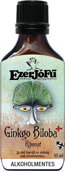 Az EzerJóFű Ginkgo Biloba+ alkoholmentes kivonat egy 50 ml-es gyógynövény alapú készítmény, amely javítja a vérkeringést és támogatja a szellemi működést. A kivonat páfrányfenyőt, észak-amerikai ginzenget és koreai ginzenget tartalmaz, napi háromszor étkezések előtt alkalmazandó, és sokrétűen felhasználható a táplálkozásban. Alkalmazás : 3×20-40 csepp naponta