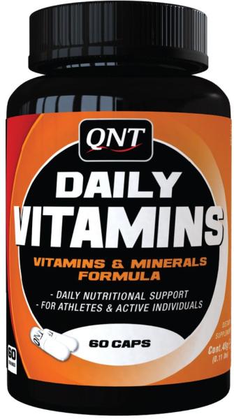QNT Daily Vitamins napi vitamin és ásványi anyagok komplex. A 12 vitaminból és 6 féle ásványi anyagból alkotott táplálék-kiegészítő segít az izomzat fejlődését és működését, segít visszaszerezni az alakot és életerőt, különösen az évszakok változásakor. Az egész család számára tökéletesen megfelel, segít kiküszöbölni a fogyókúrák után fellépő elég