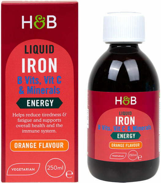 H&B vas és b-vitaminok szirup 250 ml A vas a vérben a legnagyobb mennyiségben előforduló ásványi anyag. Fontos szerepet játszik a sejtosztódás folyamatában, hozzájárul a vörösvértestek és a hemoglobin normál képződéséhez, a kifáradás csökkentéséhez. Mindezek mellett a vas támogatja a normál oxigénszállítást a szervezetben, a megfelelő kognitív funkciókat és