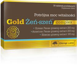 OLIMP SPORT - GOLD ZEN-SZEN COMPLEX - 30 TABLETTA Az Gold Ginseng komplex három ginzengfaj kiváló minőségű kivonatainak összetétele Koreai Panax ginzeng Panax quinquefolius, a ginsenosides tartalomra szabványosítva, és az Eleutherococcus senticosus, az eleuterozid tartalomra szabványosítva. A készítmény tartalmaz továbbá nagyon jól felszívódó magnéziumot, valamint a Bioperin