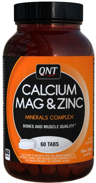 QNT CALCIUM MAG & ZINC TABS - 60 TABLETTA Az izmok, csontok és fogak egészségéért! A teljes csont erősségének megtartásához a kalcium nem elég. Az Universal Calcium Zinc Magnesium terméke 500 mg kalciumot egyesít magnéziummal és cinkkel. QNT Calcium Mag & Zinc tabletta „fully reacted szerves formában, kiváló felszívódással, laza széklet kialakulása nélkül, a nap