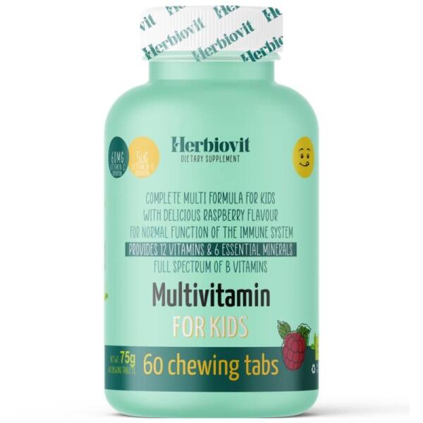Herbiovit multivitamin for kids rágótabletta Málna ízű, vitaminokat és ásványi anyagokat tartalmazó étrend-kiegészítő készítmény gyerekeknek. 4 éves kortól. Fogyasztási javaslat: 1 adag (1 rágótabletta) naponta, 4 éves kor feletti gyerekeknek. Figyelmeztetés: A termék kisgyermekek elől elzárva tartandó. Az ajánlott napi fogyasztási mennyiséget ne lépje túl! Az étre