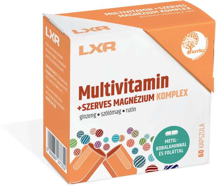Az LXR MULTIVITAMIN +SZERVES MAGNÉZIUM KOMPLEX a felnőtt szervezet élettani folyamatainak szükségleteihez igazított ideális vitamin- és ásványi anyag összetételű készítmény. A kombinációt az erek védelmét szolgáló, energetizáló, immunerősítő és a memóriafunkciót támogató hatású gyógynövényi hatóanyagok egészítik ki. A készítményben szerves kötésű jól
