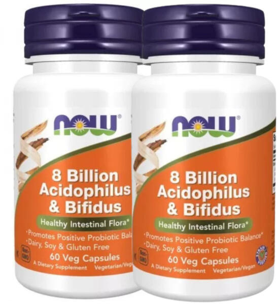 A NÉPSZERŰ NOW Acidophilus Bifidus 8 Billion probiotikum kapszula MOST MÁR 2 DB-OS CSOMAGBAN IS ELÉRHETŐ MÉG KEDVEZŐBB ÁRON! Probiotikum az egészséges bélflóra eléréséhez Tejsav- és bifido baktériumokat tartalmazó étrend-kiegészítő kapszula. 60 db Nettó tömeg: 36 g A készítmény hatóanyagként a Lactobacillus és Bifidobacterium tejsavbaktérium törzsek élő egyedeit t