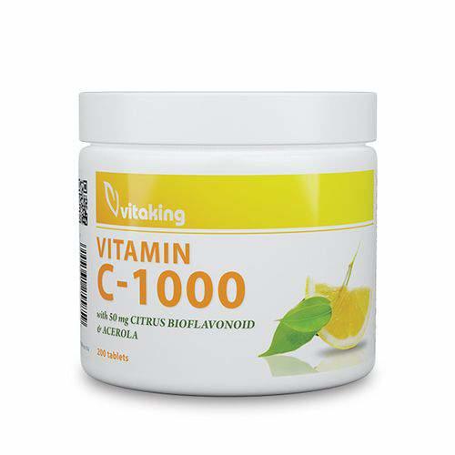 C-1000 mg + csipkebogyó + acerola + bioflavonoidok A Vitaking C-1000 válogatott, minőségi alapanyagokból készült. A sok természetes összetevő teszi igazán különlegessé ezt a készítményt. Minden egyes tabletta rengeteg citrus bioflavonoidot tartalmaz, valamint sok acerola és csipkebogyó található benne. A C-vitaminnak vagy más néven aszkorbinsavnak számtalan feladata van a s