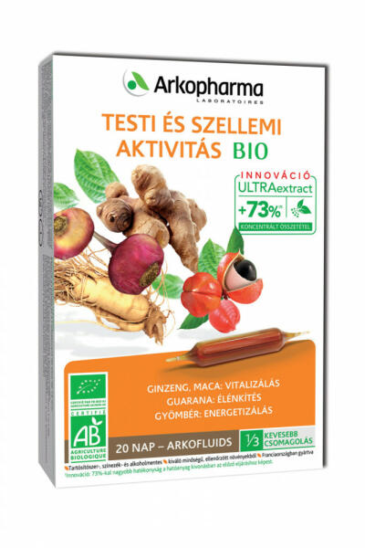 Ginzeng, maca, guarana, gyömbér. 20 db-os ampulla; Arkopharma termék a testi, szellemi aktivitásért. Szigorúan válogatott ökológiai termelésből származó gyógynövényekből. A ginzeng gyökér fizikai és szellemi stimuláló hatásáról ismert, nevezik az "élet virágának" is. A maca hozzájárul a fizikai teljesítőképességhez és segítheti a fáradtság elleni küzdelmet. A