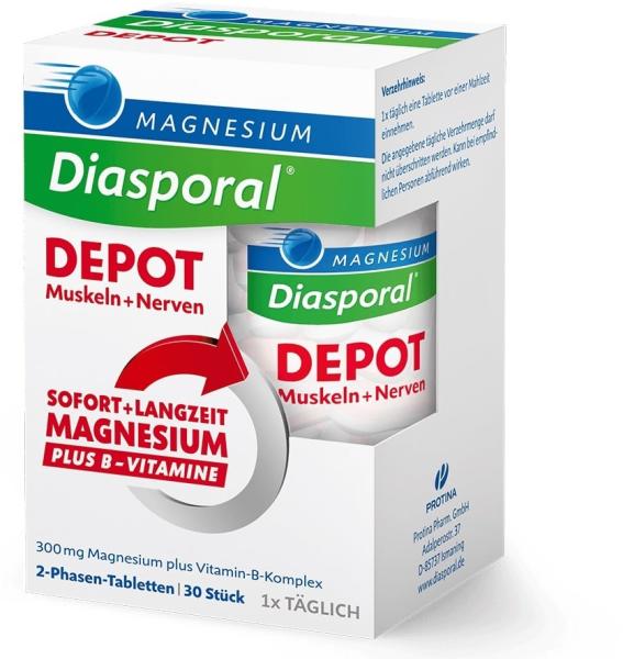 A Magnesium Diasporal 2-fázisú étrend-kiegészítõ tabletta, amely azonnali és hosszantartó felszívódást nyújt. 2-fázisú étrend-kiegészítő tabletta, azonnal és retard felszívódó 300 mg magnéziummal és B-vitaminokkal (B1, B2, B6, B12) az izmok és idegek számára. A Magnesium Diasporal DEPOT kimondottan azoknak készült, akiken nagy a nyomás a munkahelyükön, tanulmányaik