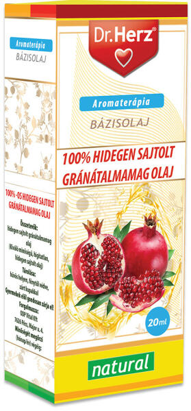 Dr. Herz Gránátalmamagolaj 100% hidegen sajtolt 20ml Természetes ránctalanítót keresel? Megtaláltad!A gránátalmamag olaj egy rendkívül gazdag ránctalanító olaj, magas arányban tartalmaz punicinsavat, mely kiváló antioxidáns , azaz védi a bőrt a környezeti ártalmaktól, továbbá hozzájárul a bőr rugalmasságának megőrzéséhez. Emellett a gránátalmamag olaj kiválóan