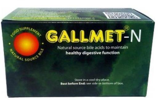 GALLMET-N/90 természetes epesavakat tartalmazó, bélben oldódó étrend-kiegészítő kapszula Kiszerelés: 90 kapszulaÖsszetevők: szárított marhaepe; kapszula héj: hidoxi-propil-metil-cellulóz; tömegnövelő: mikro-kristályos cellulóz; kapszula héj: gellan gumi; csomósodást gátlók: szilícium-dioxid, magnézium sztearátAjánlott napi adag: reggel 1, délben 1-2 és este 1 kapszu