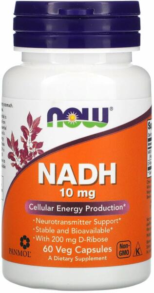 NOW NADH 10mg Neurotranszmitter támogatás Stabil, magas biológiailag hozzáférhetőségű forma 200 mg D-ribózzal A NADH (redukált nikotinamid-adenin-dinukleotid) a B3- vitaminból, azaz niacinból származó, minden élő sejtben megtalálható kofaktor. A NADH több száz biokémiai reakció nélkülözhetetlen kofaktora, amelyet a szervezet széleskörűen hasznosít a sejtek energiaterme