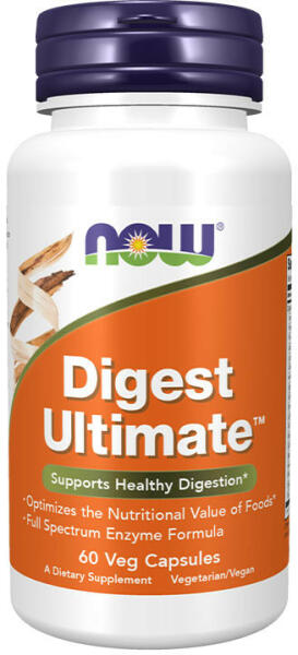 Digest Ultimate - 60 vegán kapszula - NOW Foods A Digest Ultimate emésztőenzimek hatékony, szabadalmaztatott kombinációja, amelyet kiválasztott mikroorganizmusok ellenőrzött fermentációjával állítanak elő, és stabil a gyomor-bél traktus teljes pH-tartományában. * Ez a teljes spektrumú emésztést támogató formula segít optimalizálni a tápanyag felszívódását azáltal, h
