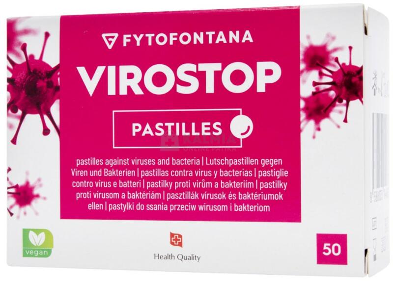 Fytofontana VIROstop Pasztilla - Citrus ízben 50 db Étrend-kiegészítő citrus ízbenAz influenza és a megfázás a leggyakoribb fertőző megbetegedések közé tartoznak, légzési rendellenességekkel járnak, és – bár az esetek nagy többségében lefolyásuk enyhe - súlyos tüneteket is okozhatnak. Hirtelen kezdődik, ezért gyorsan és időben kell beavatkozni. Mindkét betegséget