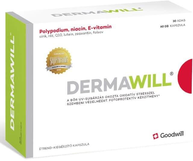 Fotoprotektív hatású készítmény *A bőr UV-sugárzás okozta oxidatív stresszel szembeni védelméért támogatja a szervezet antioxidáns rendszerét növeli a bőr UV-sugárzással szembeni védelmét napfényre érzékeny bőr esetén kifejezetten ajánlott www. dermawill. hu Dermawill® kapszula 20x Hosszabb leírás: A Dermawill® vitaminokat, ásványi anyagokat és növényi kivonato