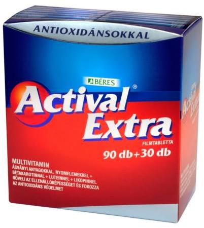 Gyártó: BÉRES Modell: Actival Extra filmtabletta (90+30db) 120db Leírás: A multivitamin használata fokozott szükséglet vagy csökkent bevitel okozta általános vitamin-, ásványi anyag- és nyomelemhiányos állapotok megelőzésére, például kiegyensúlyozatlan táplálkozás (pl. fogyókúra, vegetarianizmus) vagy jelentős fizikai igénybevétel (pl. sport) javasolt. A termék multi