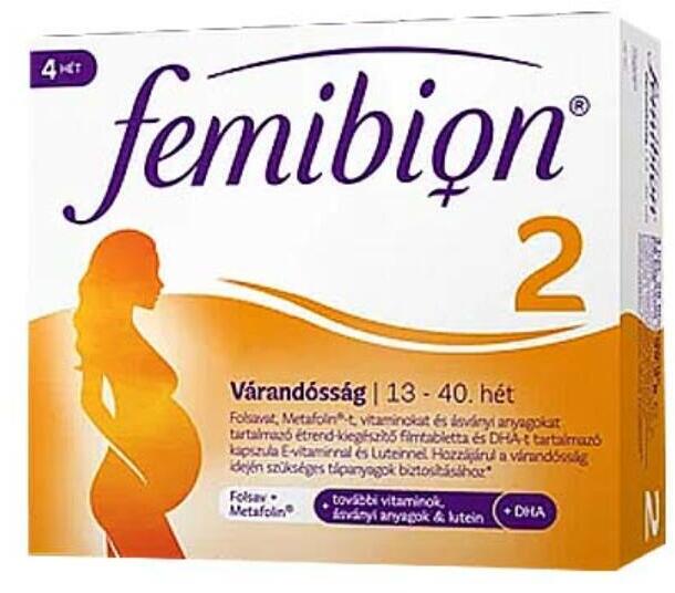 Gyártó: Femibion Modell: 2 Várandósság és Szoptatás kapszula+filmtabletta 56+56db Leírás: Femibion 2 várandósság A 13. várandóssági hétre a magzat szervei teljesen kifejlődnek, és a növekedés időszaka veszi kezdetét. Ettől az időponttól kezdve ajánljuk a Femibion 2 folátot és DHA-t tartalmazó étrend-kiegészítőt. A megfelelő folátbevitel biztosítása a várandós