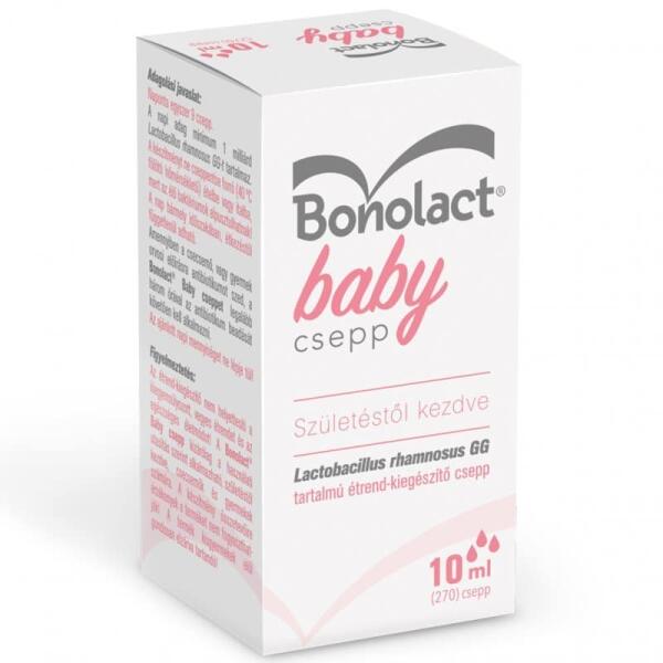 Bonolact ® Baby csepp ÉLŐFLÓRÁS CSEPP BABÁKNAK Étrend-kiegészítő Lactobacillus rhamnosus, GG A Bonolact ® Baby csepp speciálisan csecsemőknek fejlesztett, kiemelkedő minőségű élőflórás készítmény, amely születéstől kezdve adható . Tejsavbaktériumot, Lactobacillus rhamnosus GG-t tartalmaz, melynek természetes élettere az emberi szervezet. A Lactobacillus rhamnosus GG