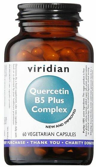 A Viridian Quercetin Complex 300 mg kvercetint tartalmaz adagonként, emellett még B5-vitamint, csalánkivonatot, kamillavirágot, fenyőkéreg, bromelaint és acerolát, amely utóbbi kiváló C-vitaminforrás. Adagolás napi 2 kapszula fogyasztása ajánlott Összetétel 2 kapszulában Quercetin 300mg Vitamin B5 (Calcium pantothenate) 150mg Nettle leaf (Urtica dioica) extract (41) 100mg Pine ba