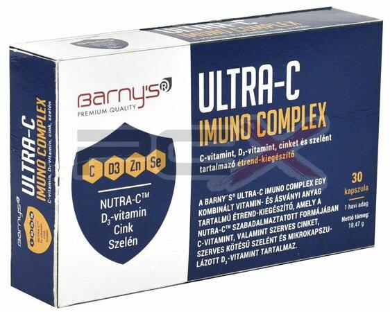 A Barny's® Ultra-C imuno complex egy kombinált vitamin- és ásványi anyag tartalmú étrend-kiegészítő, amely a Nutra-C szabadalmaztatott formájában C-vitamint, valamint szerves cinket, szerves kötésű szelént és mikrokapszulázott D3 -vitamint tartalmaz. A Barny's® Ultra-C imuno complex egy kombinált vitamin- és ásványi anyag tartalmú étrend-kiegészítő, amely a Nutra-C szab