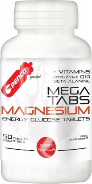 Vitaminok és ásványok Penco Mega Tabs Magnesium szőlőcukor energia-tabletta, magnézium, karnozin és antioxidáns komplex hozzáadásával a görcsök és az oxidatív stressz ellen.