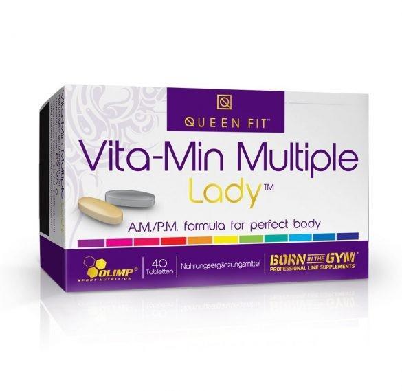 OLIMP QUEEN FIT VITA-MIN MULTIPLE LADY VITAMIN COMPLEX NŐKNEK Egyensúlyt hoz egy sportos nő mindennapjaiba az aktív, sportos életvitelhez szükséges vitaminok, ásványi anyagok, antioxidánsok és értékes gyógynövények kivonata, melyet a lehető legtökéletesebb hatásért két részre osztottak. A reggeli és esti órákra bontott külön tablettás kivitel a szükséges makrotápany