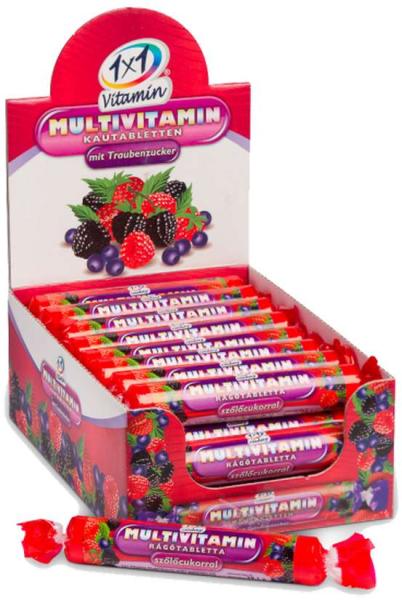 Az 1x1 Vitaday Multivitamin erdei gyümölcs ízű étrend-kiegészítő rágótabletta szőlőcukorral 6 vitamint tartalmaz, amelyek hozzájárulnak az immunrendszer normál működéséhez. Finom erdei gyümölcsös ízben. Könnyen szétrágható. A szőlőcukor segíti a vitaminok gyors felszívódását. vitamintartalom 2 tablettában RDA C-vitamin 80 mg 100,0 E-vitamin 12 mg 100,0 B6-vitami
