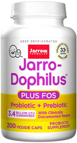 PROBIOTIKUM+PREBIOTIKUM A Jarro-Dophilus® + FOS egy szinbiotikum (probiotikum+prebiotikum), inulin-fruktooligoszacharidokkal (FOS) formulálva, a hasznos baktériumok további táplálkozási támogatása érdekében. GluténmentesTejmentes Szinbi otikus formula fruktooligoszacharidokkal 6 féle törzs, beleértve a BB536-ot 3,4 milliárd organizmus adagonként A Jarro-Dophilus® + FOS olyan tör