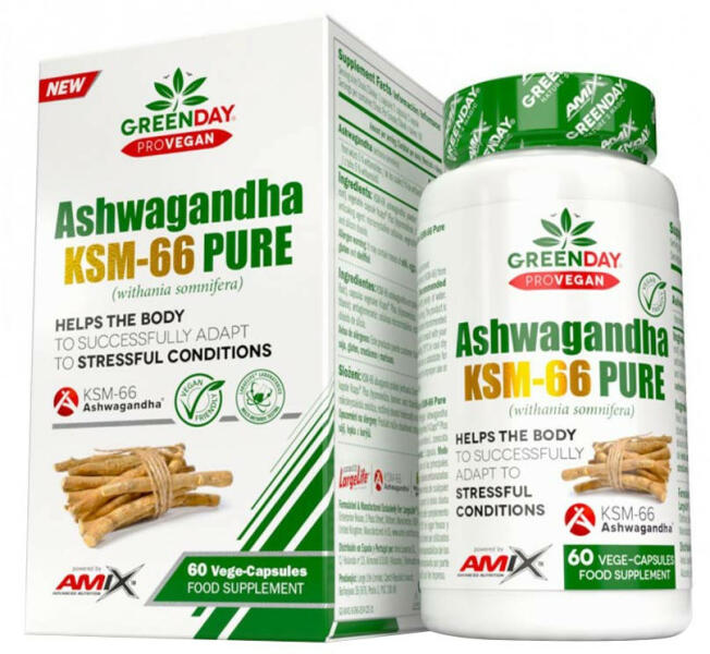 AMIX Nutrition - GreenDay® ProVEGAN Ashwagandha KSM-66 Pure 600 60 Vcaps BOX Csökkenti a stressz és a szorongás szintjét Javítja a fókuszt és a memóriát Fokozza az energiaszintet Segít a vércukorszint szabályozásában Gyulladáscsökkentő hatás Segít fenntartani az egészséges koleszterinszintet Támogatja az immunrendszert AMIX Nutrition - GreenDay® ProVEGAN Ashwagandha KSM-66