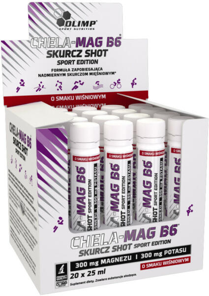 A magnézium új generációja! Folyékony magnézium- és káliumtartalom ampullákban, valamint B6, B12, tiamin és riboflavin vitaminokkal dúsítva. OLIMP CHELA-MAG B6® CRAMP SHOT SPORT EDITION 25ML Az Olimp Chela-Mag B6 valósan szerves kötésben tartalmaz az idegrendszerünk, szívünk és izmaink számára nélkülözhetetlen magnéziumot – B6 vitaminnal megerősítve. Így kiemelkedőe