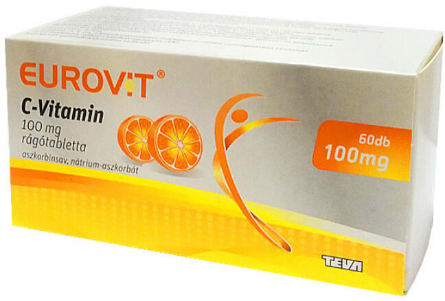 Budapesten és Pest megyében gyors házhozszállítással!C-vitamin-hiány (skorbut) illetve Möller-Barlow betegség (vérzésekkel és rachitis-szerű csontelváltozással járó skorbut kisgyermekekben) megelőzése és kezelése. Methemoglobinaemia. 5 1. A GYÓGYSZER MEGNEVEZÉSE EUROVIT C-vitamin 100 mg rágótabletta 2. MINŐSÉGI ÉS MENNYISÉGI ÖSSZETÉTEL 40 mg aszkorbinsav és 70 mg n