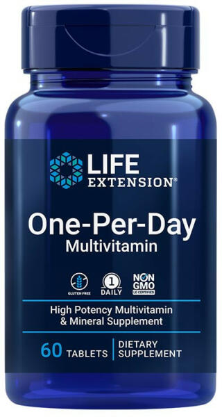 HATÓANYAGOK NAPI EGY TABLETTÁBAN Napi egy multivitamin tabletta alapvető vitaminokkal, ásványi anyagokkal és egyéb tápanyagokkal. GluténmentesGMO-mentesMi az a One-Per-Day Multivitamin?Sokan szedünk multivitamint, de a benne található egyes tápanyagok mennyisége általában alacsony. Napi egyszeri multivitaminunk az alapvető vitaminok, ásványi anyagok és egyéb tápanyagok teljes