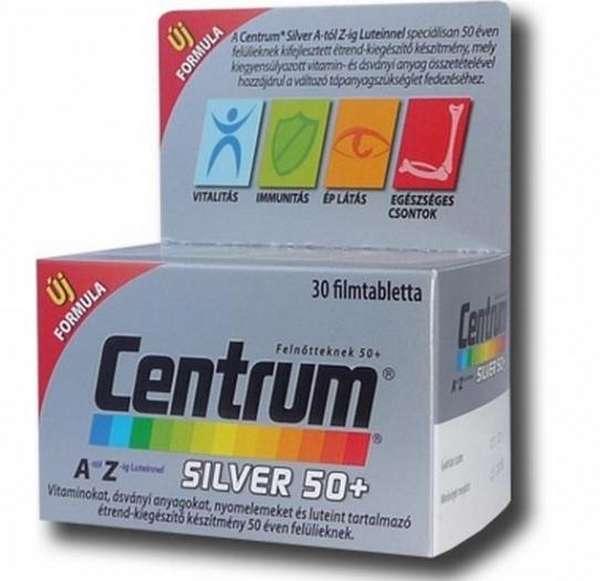 Centrum Silver 50+ A-tól Z-ig filmtabletta 30x Vitaminokat, ásványi anyagokat, nyomelemeket és luteint tartalmazó étrend-kiegészítő készítmény 50 éven felülieknek. Mindannyian teljes életet akarunk élni, törődni szeretteinkkel és - mindenek előtt - egészségesek maradni. Mindehhez azonban nélkülözhetetlen a kiegyensúlyozott tápanyagbevitel biztosítása szervezetünk szá
