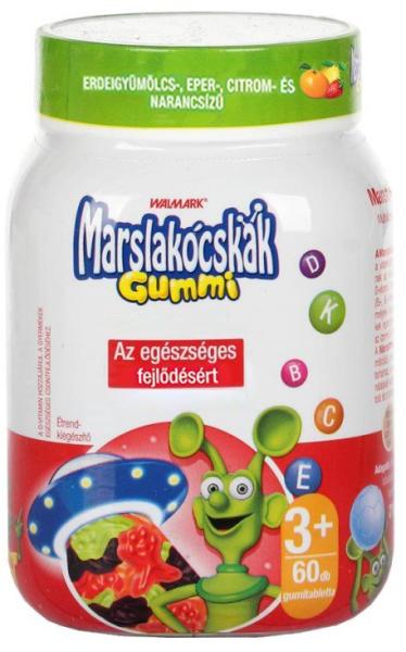A Marslakócskák Gummi vitamin gumitabletta formában tartalmazza a vitaminokat és ásványi anyagokat. Hatóanyagai hozzájárulnak az immunrendszer megfelelő működéséhez, a szervezet energiatermeléséhez, részt vesz a gyermekek egészséges csontfejlődésében.